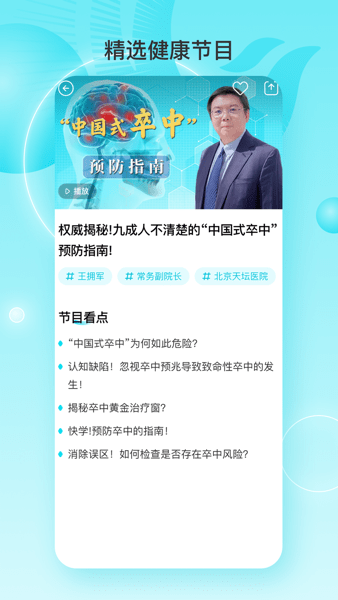 权威健康科普文章、原创医学漫画、独家健康节目。