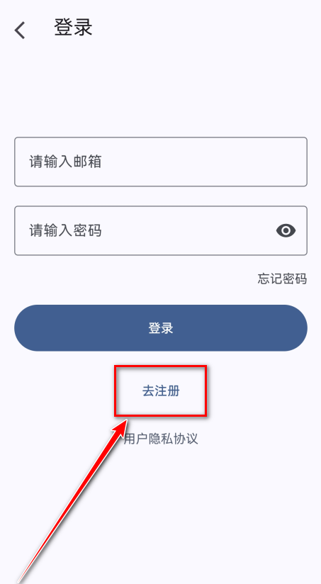 2.请按照软件的要求输入邮箱、密码、再次输入密码、用户名,再点击去注册即可。