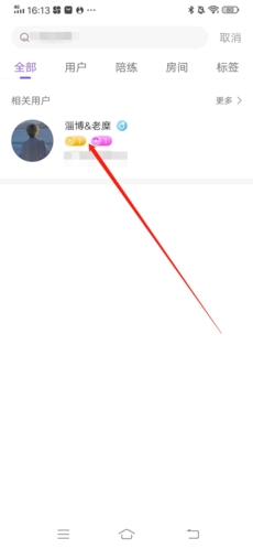 3、点击搜索出的用户;