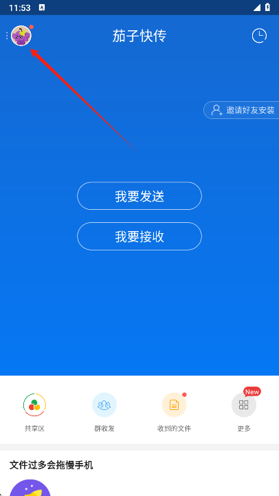 1、打开茄子快传应用,选择上方的【发送】选项,