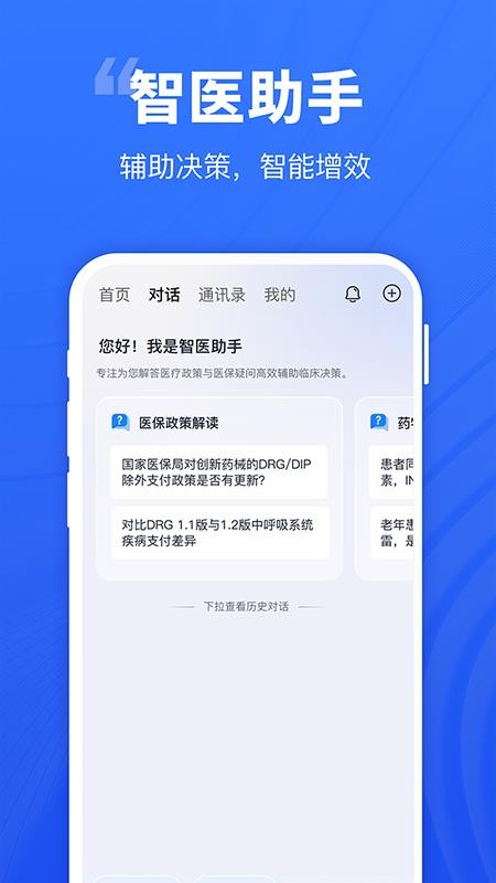 Digital Doctor软件是一款专为医生用户提供线上专属诊疗伙伴的应用软件,软件中提供了强大的智医助手,用户可以实现AI对话互动,实时咨询相关的医疗问题,对权威的医保政策都可详细解读查看,更好的了解,就可辅助用户来轻松决策,畅享高效便捷的决策体验。平台还为用户提供了线上专属的工作台,随时查看处理待办事项,轻松掌握,更好的实现移动办公,提高用户的诊疗效率;此外,Digital Doctor官方版还支持用户随时管理相关的患者,让你轻松管理,便捷查看患者的档案,精准治疗管理,有需要的用户就赶紧来本站下载使用吧!