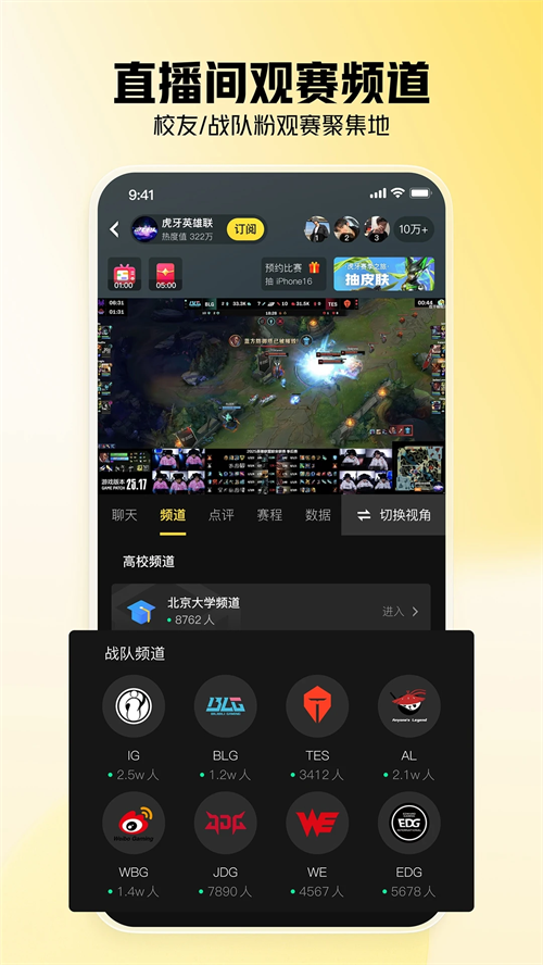 虎牙直播平台app是一款国内广受欢迎的弹幕互动式直播平台,这里有着丰富的直播内容,更有最新游戏赛事直播频道,四大游戏频道为你带来无限精彩内容,更有超多细分类类型,涵盖娱乐、综艺、教育、户外、体育等内容,无论任何热门游戏你都可以找到有趣的主播看他们的精彩操作,还可以弹幕聊天以及送礼物为他们加油喝彩,带你领略到前所未有的视、听直播享受。