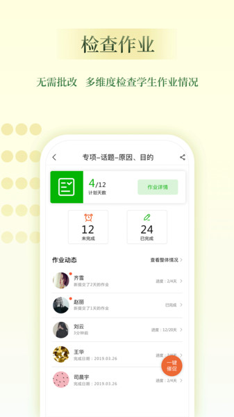 维词教师助手app高中版可以说是教师必不可少的辅助工具,支持布置作业、检查作业等多项功能,志在帮助教师减负,为广大同学服务为原则,您可以通过此app查看学生的作业完成情况,用起来非常的方便!