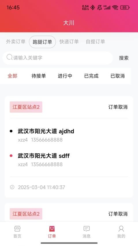 3、查看和管理跑腿订单,知道各个订单的状态,了解订单完成情况;