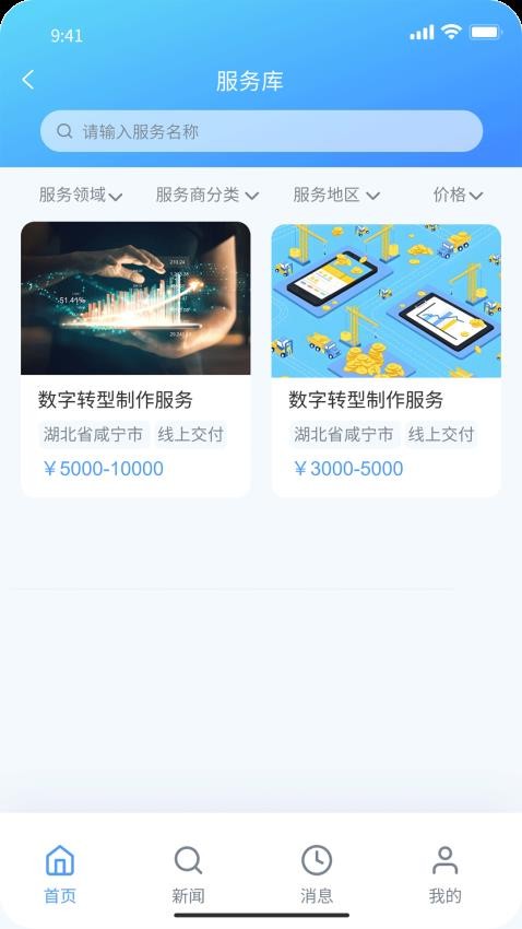 2、进入到服务库中可以查找你需要的服务进行线上交付获取服务;