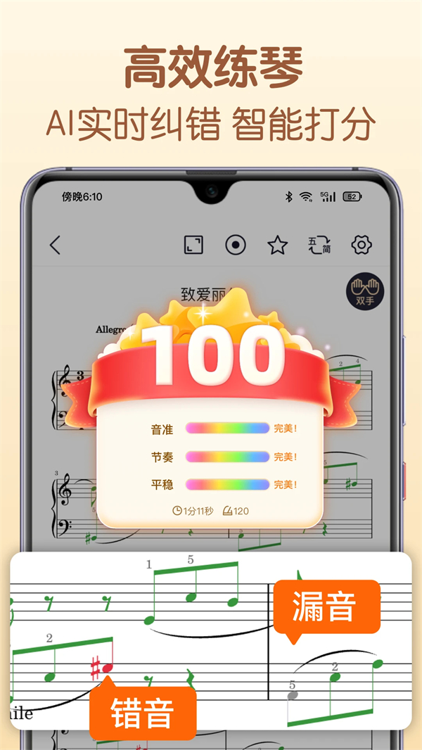 【强大的智能乐谱】乐谱可播放,并配合变速/节拍器,谱表宽度调节等小工具,让你的练习,演奏更加流畅,舒适。