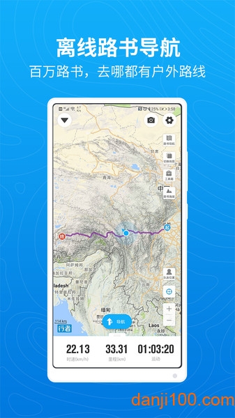 运动地图实时显示路书、队友位置、查看海拔、测量距离,防止迷路和掉队