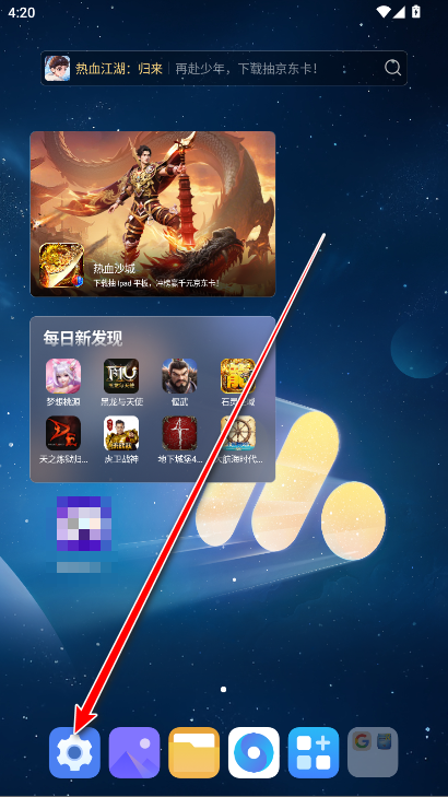 在设置>桌面和个性化>桌面设置>桌面搜索入口中关闭开关后,在手机桌面上将不会显示荣耀搜索入口。