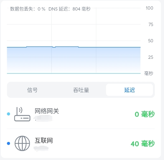 6.然后你可以查看当前互联网的实时延迟,包括网关延迟和互联网延迟。