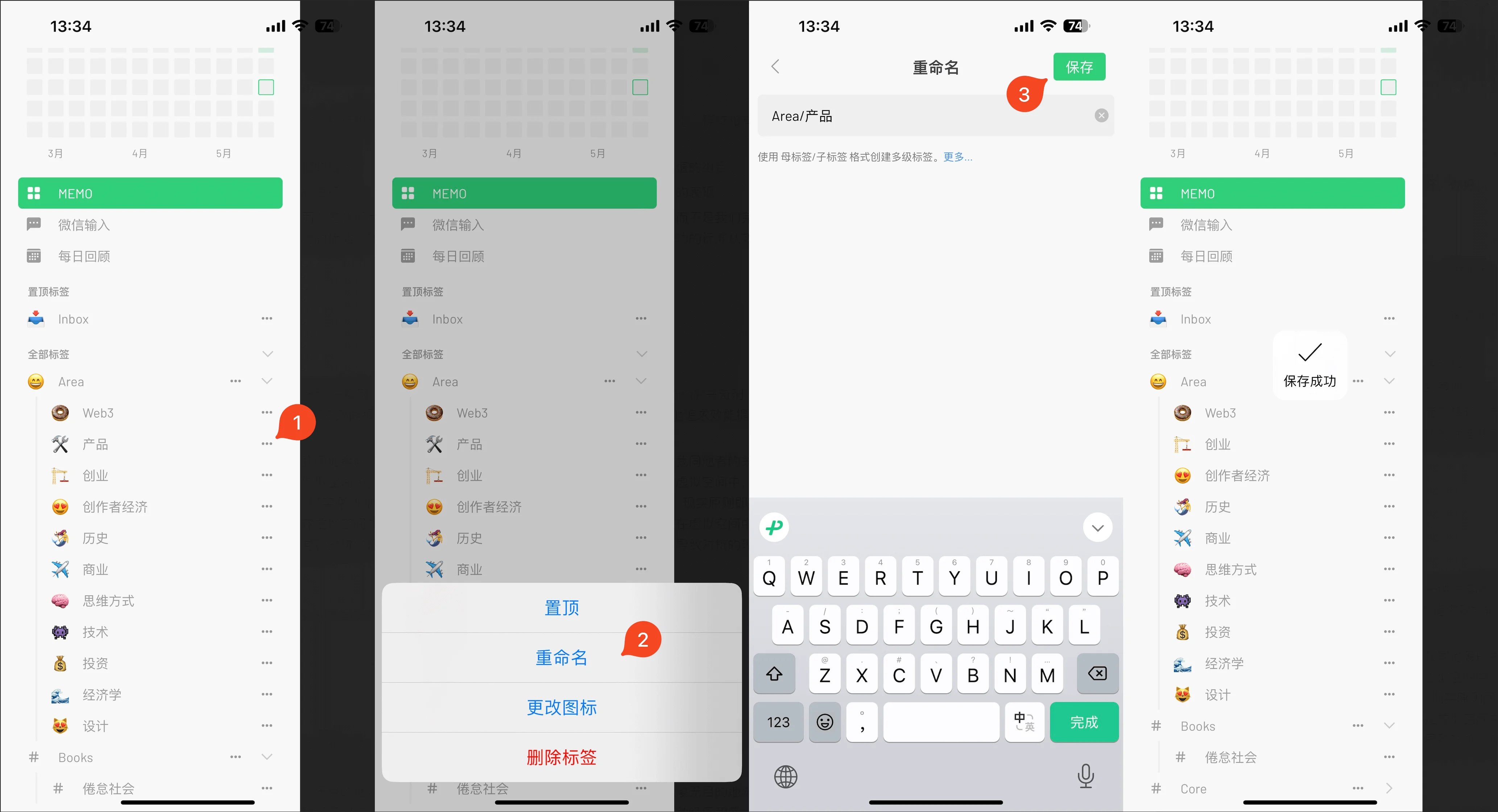 输入完标签名后,按下保存按钮。这样,你的笔记就会被成功添加到相应的标签分类中啦