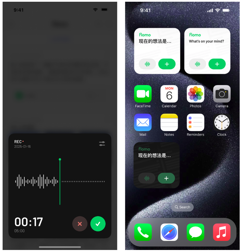 在 flomo 主界面,长按底部「+」按钮,进入录音模式。