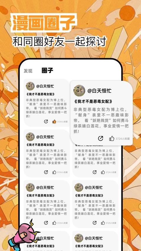 还提供了线上的漫画圈子,方便用户可以在线探讨漫画。