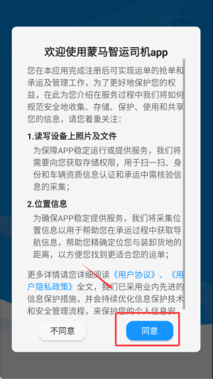 1、阅读并确认服务协议,点击进入司机认证功能主操作界面。