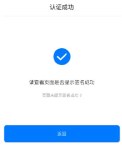 全部认证成功后页面,系统会进行电子签章加盖操作。此时APP端将会与全程电子化系统之间进行数据交互,因数据交互过程中的处理逻辑较多,可能存在APP端提示成功,全程电子化系统页面端未提示成功的情况,您可以稍等2分钟再点击全程电子化系统页面的同步信息按钮查看最终签名结果。