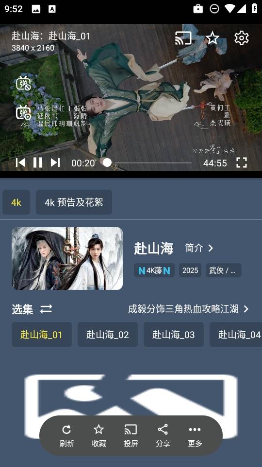 1、多画质选择,适配网络:为了适应不同的网络环境和设备显示效果,《清流影视》提供了多种画质选择。用户可以根据自己的网络带宽,在高清、超清等画质之间切换,确保流畅观看,同时也支持4K超清画质的播放(在支持的设备上)。