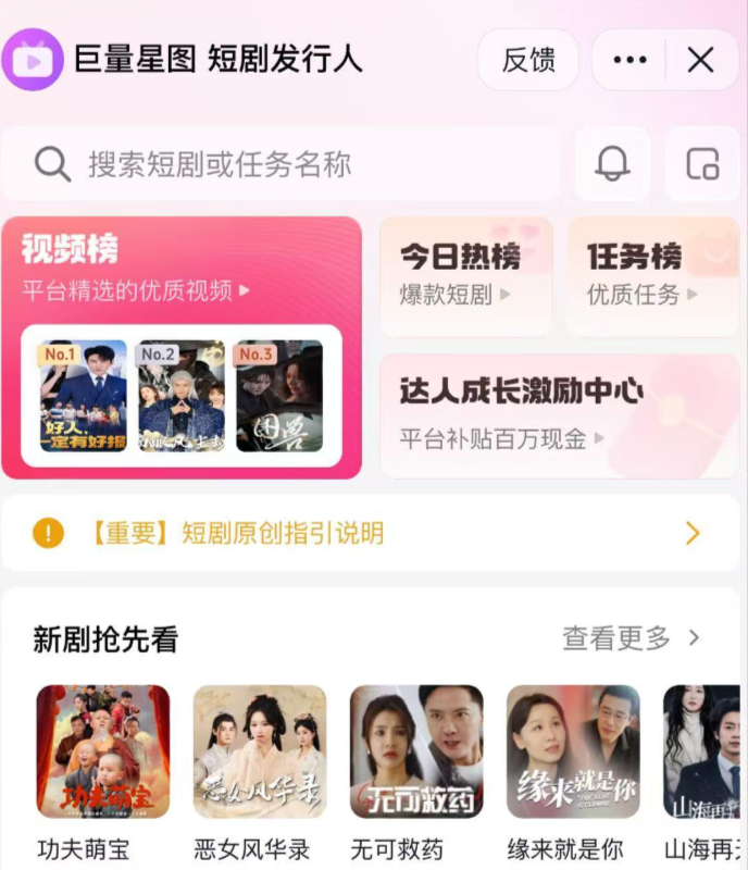 像抖音特有的星图任务、短剧推广计划、抖音创作者中心,都是为创作达人内容变现所准备的入口,而这些入口,无论是抖音极速版、抖音火山版,都是不具备的。
