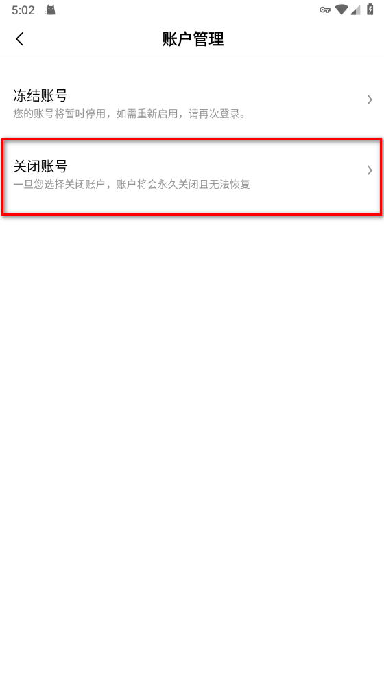 选择关闭账号