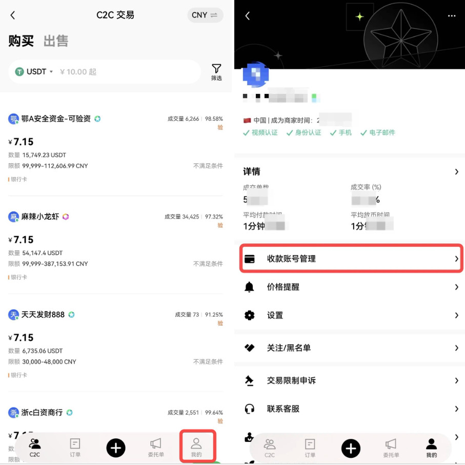 点击右下角【我的】―【收款账号管理】;
