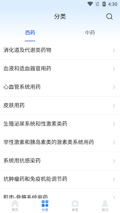 4.点击分类,可以分门别类,根据疾病或药品属性寻找合适的药物。