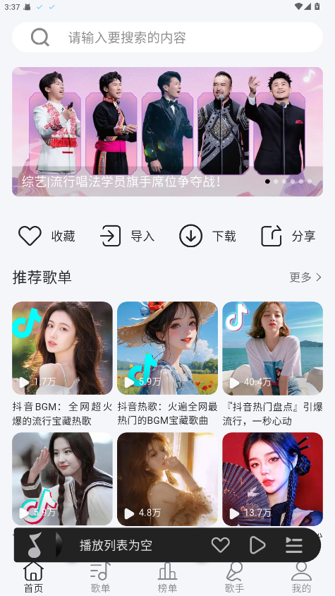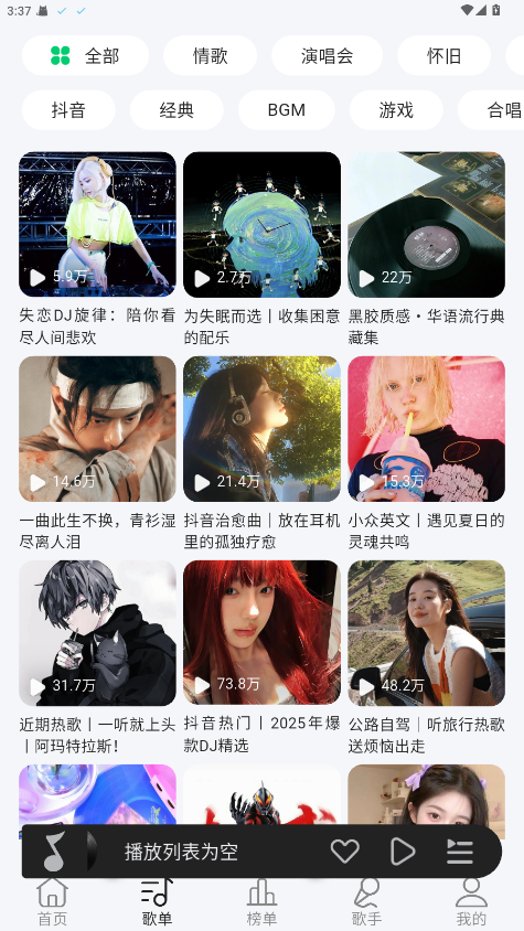 2.用户可以浏览平台提供的各种歌单,也可以自定义自己的歌单,方便收藏喜欢的歌曲。