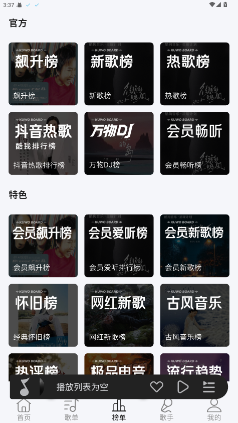 5.提供多个音乐榜单,如流行榜、新歌榜、热歌榜等,帮助你了解当下的流行趋势。