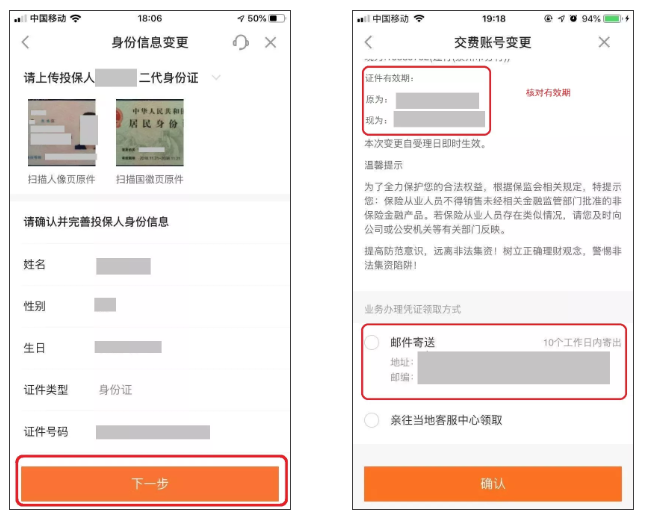 3.选择变更对象投保人/被保人/受益人,点击变更身份信息。
