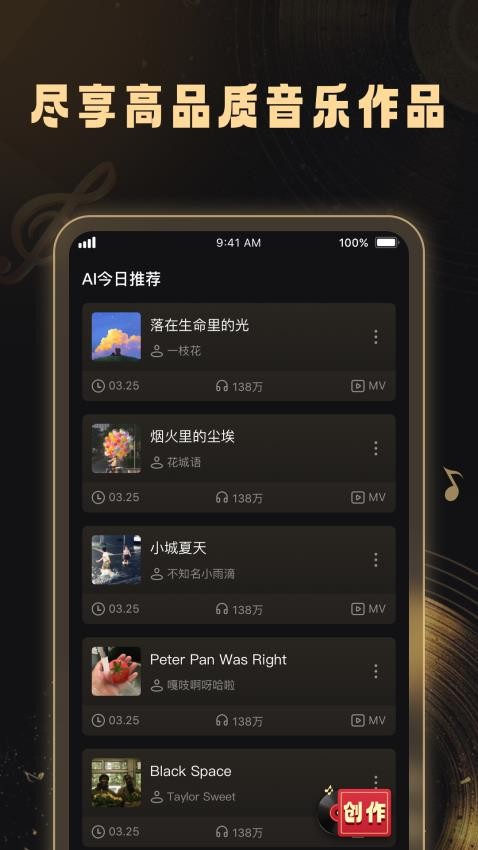 可以根据自己的灵感关键词对音乐作品进行智能创作,呈现出你的灵感作品。
