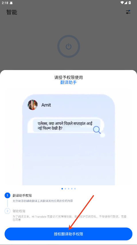 1.打开软件,先授予对应的权限,进入软件后,先选择要翻译的语言