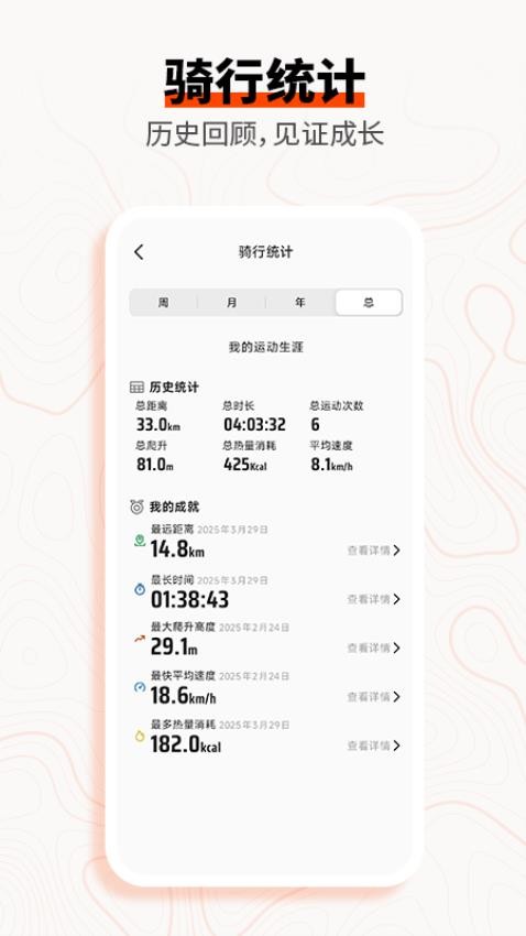 回顾自己的骑行历史数据,让用户知道自己的成长进步情况,以后就能够实现更合理的骑行了;
