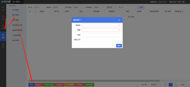 (2)点击【设置】――【用户管理】――左下角【新建】,填写对应业务员账户信息;