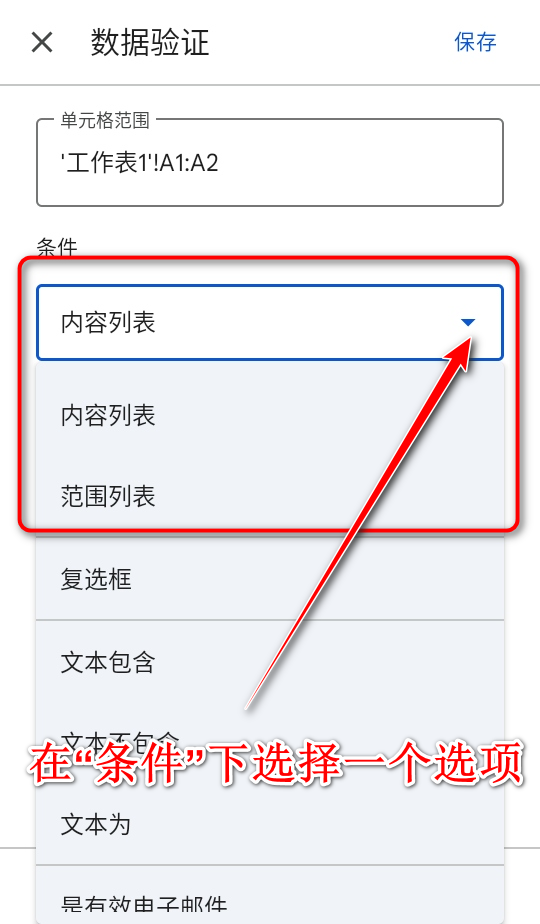 谷歌表格怎么添加下拉选项