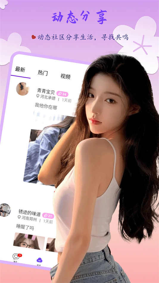 【心动匹配】:智能推荐优质用户,邂逅最合适的TA,让心不再孤单无聊! 身边的有缘人,从语聊开始,遇到让你一见钟情的TA,探一探彼此的距离,开始一段浪漫的爱情。