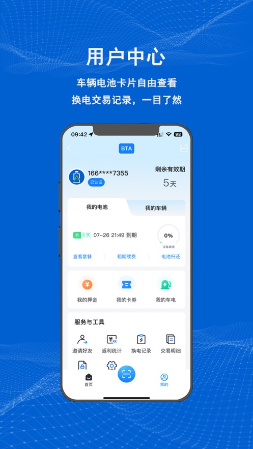 注册账号并登录之后,可以查看周边换电柜,购买对应套餐后,可以进行扫描换电。