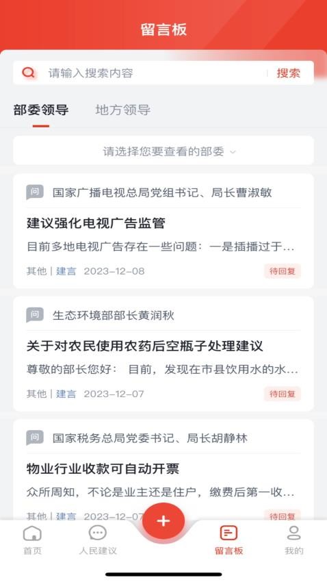 2013年,面向网民留言办理单位的《领导留言板》APP客户端上线,办理单位可查看、回复留言。本次升级迭代后,网民可通过客户端直接留言,不受时间地域限制,并支持图片上传功能,一键分享微博、qq、微信、朋友圈;领导干部也可随时随地查看网民留言,实时掌握民生舆情;办理单位可通过客户端交办、认领、解释留言,实现移动化办公。