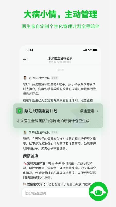 未来医生app可以为广大的用户提供专业的医疗指导,以后各种常见的小病都可以快速的咨询了,可以获取详细的操作,让你知道如何做好康复计划,帮助你能够轻松的搞定许多健康问题,这样才可以让生活变得非常舒适,是你生活中的医疗咨询助手,让你获取更权威的医疗服务!