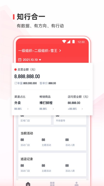 【经营数据】向伙伴同步责任区域或组织范围内的经营数据及相关明细,掌握数据动态,了解数据构成,呈现数据细节,以便于更好的开展和规划下一步工作内容。