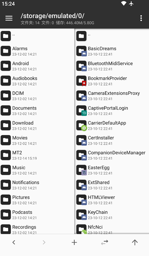 -自带强大的文本编辑器,可以流畅编辑大文本文件,支持设置是否显示行号、开关自动换行、双指缩放字体大小、自动识别编码、代码语法高亮、自动缩进、正则搜索替换。