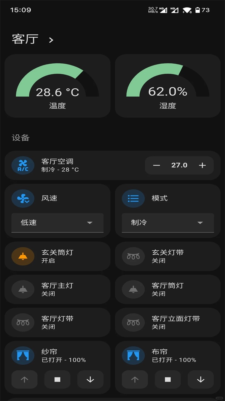 智能家居控制:Home Assistant app 提供了对智能家居设备的控制,比如灯光、窗帘、温度等。