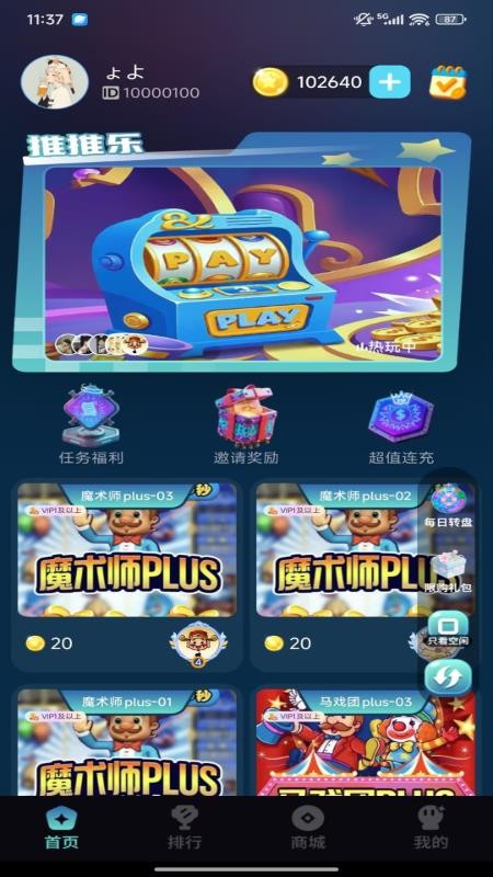 4、查看个人账户,知道个人赚到的金币数据,便于用户自由畅玩;