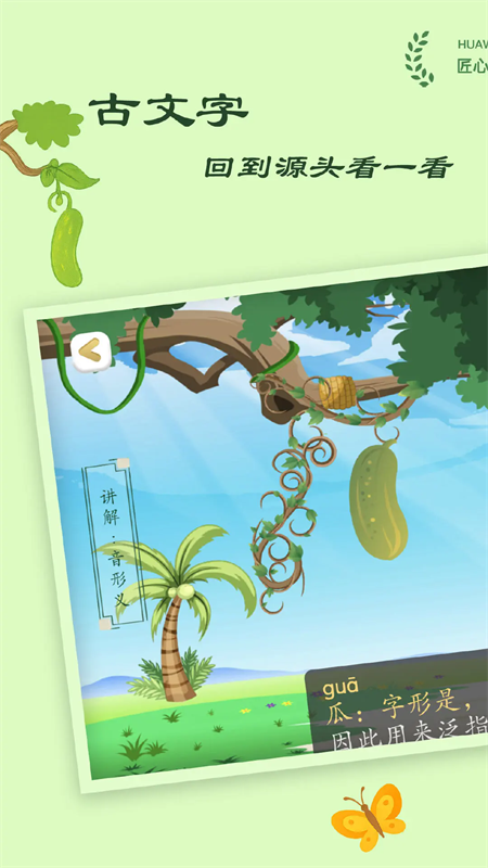 古古识字app引入了古代汉字,并且将古代汉字到今天汉字的演变过程通过互动游戏的方式展现出来,从而帮助人们更好的理解,这个汉字为什么是现在这样的形状、这样的含义。