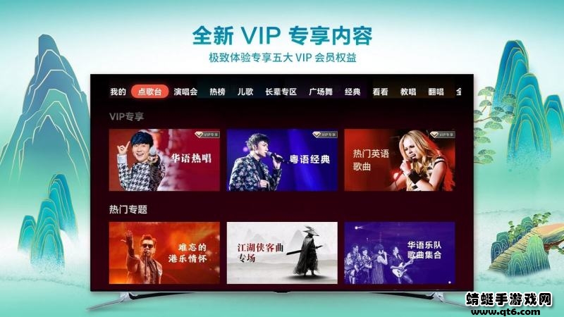 全民K歌tv版是一款很有趣的k歌软件,让你在家里也可以感受KTV版的感受,支持进行扫码点歌、手机遥控等功能,里面有着海量的高清MV。
