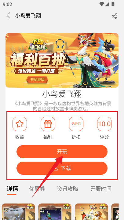 3、然后选择 一款游戏可进入到该游戏的详情界面如图所示,这里可以查询游戏福利,折扣,可以下载或者直接点击开玩。