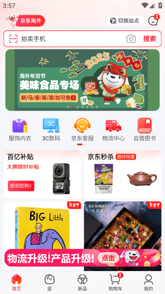 这时点击首页,即可进入到海外的京东界面了。