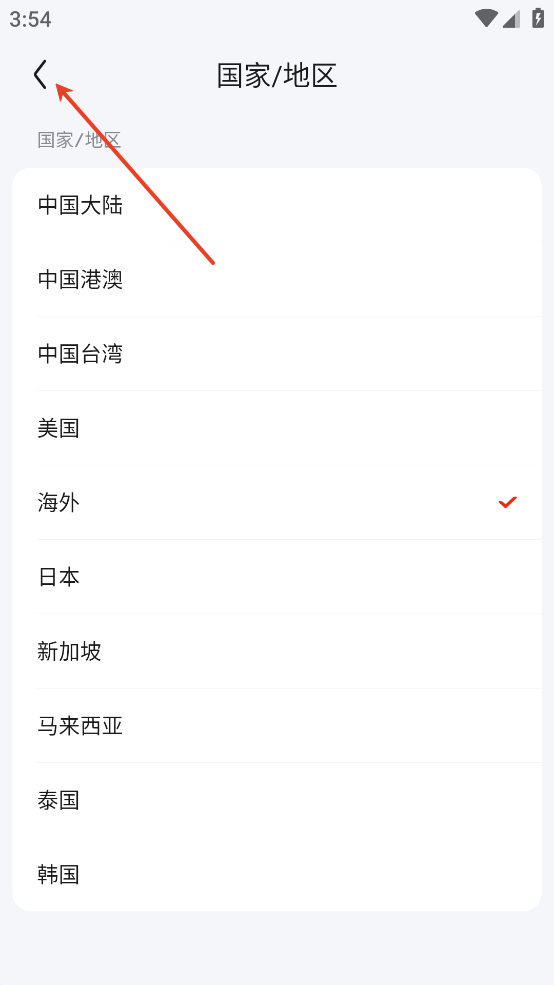 接下来在打开的页面中找到并点击自己想要切换的国家或地区。
