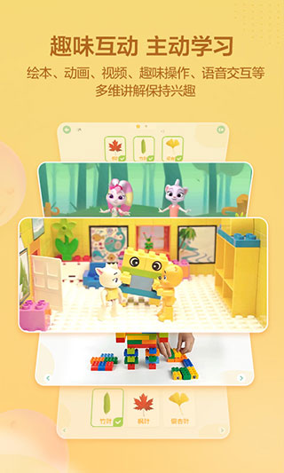 3、趣味互动 主动学习——通过绘本、动画、视频、趣味操作、语音交互等丰富的学习形式,多维度学习手段保持孩子的学习热情。