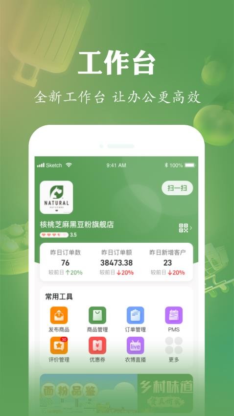 网上农博商家平台是用来快速处理订单的,还能编辑上架商品,每天的销售量也是随时可以查看的,还能随时和买家去沟通,为他们处理一些问题,经营店铺的好帮手。