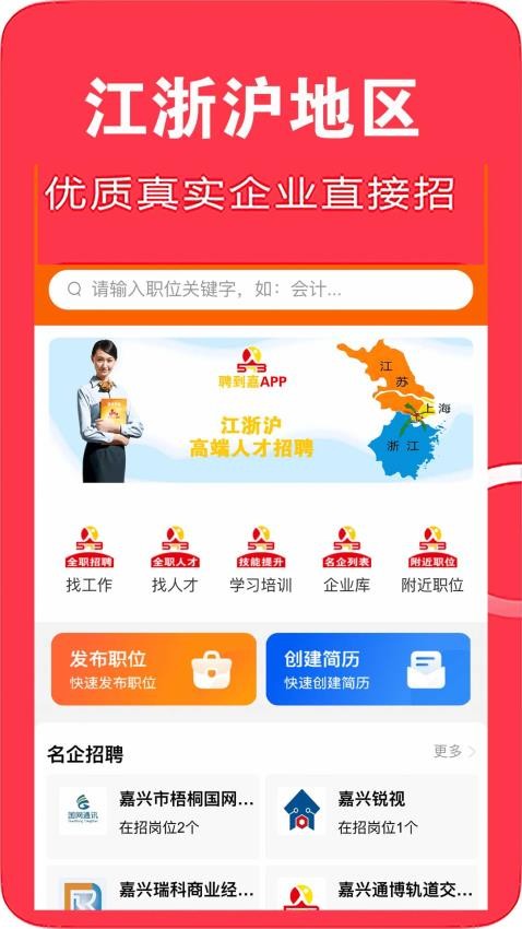 聘到嘉app官方版是针对江浙沪地区打造的招聘求职平台,通过平台就可以快速的掌握海量的人才信息,这样就可以满足许多企业的招聘需求,以后就可以通过平台轻松的获取高质量人才,这样就可以为许多的企业解决招聘问题,以后招聘就会变得更高效、更轻松了。聘到嘉最新版也可以让求职者轻松的找工作,你在这里就能快速的获取海量的职位招聘信息,以后就能够轻松的开启对应的求职模式,结合自己的工作经历和工作经验,可以找到合适自己的职位,让你直接通过平台实现高效求职,以后找工作、跳槽都会变得更容易!