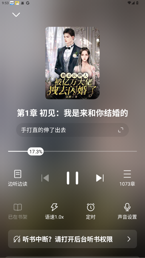 3.进入听书界面,这里可以设置语速、定时等操作。