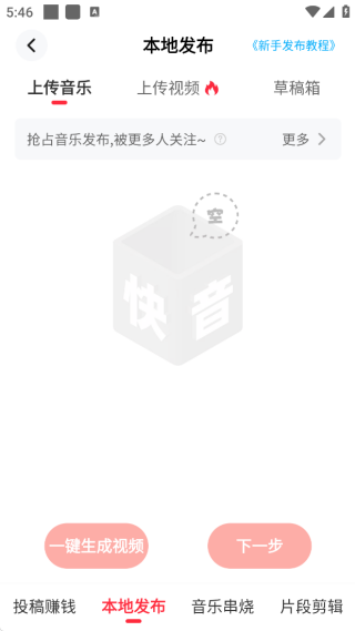 3、点击底部的+按钮,你可以将本地的音乐视频经过制作发布到平台中,供其他用户浏览听取。
