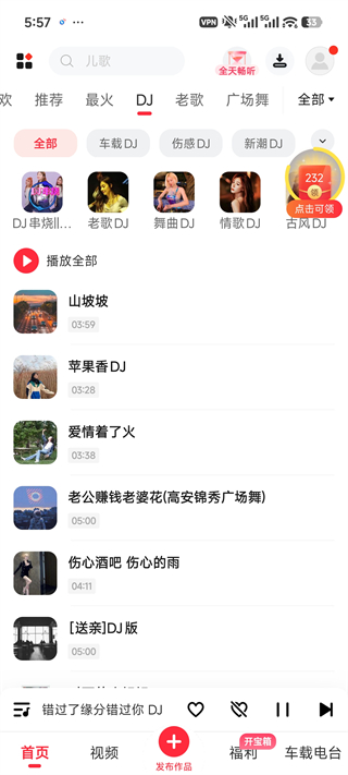 1、打开APP后,首页即可进入听歌模式,上下滑动随机切换歌曲,根据顶部分类找寻喜爱的音乐吧。